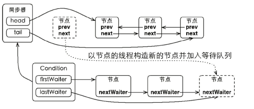 等待队列是一个FIFO的队列,并且在同步队列中的节点复用了AbstractQueuedSynchronizer.Node,与同步队列中的节点一一致